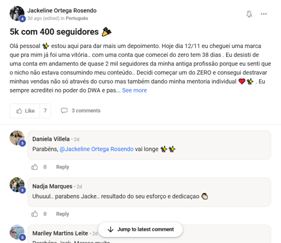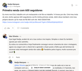 Este curso inclui uma comunidade própria com mais de 20.000 pessoas onde você pode fazer perguntas e fazer networking. Além disso, se você adquirir o curso comigo, será adicionado ao meu CANAL PRIVADO, onde receberá meu número de telefone pessoal e poderá participar de um grupo de chat opcional com chamadas semanais! Quero ver você se tornar um caso de sucesso!